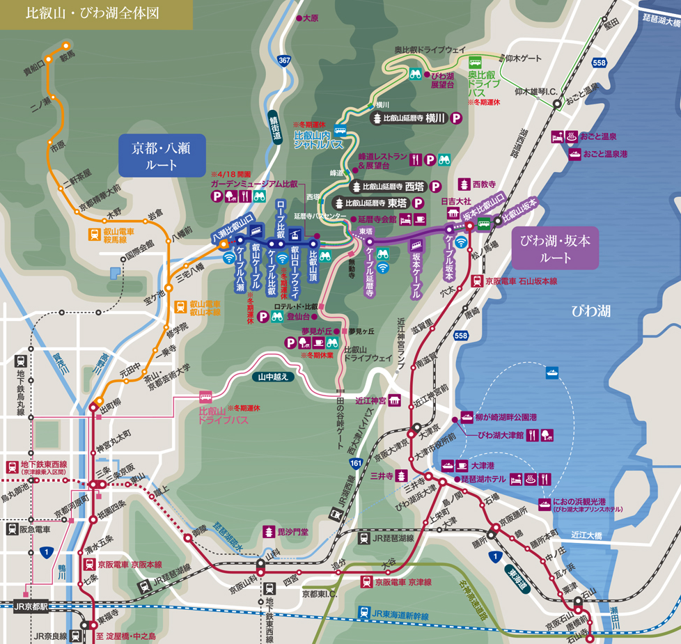 京都・出町柳、大津・坂本から比叡山への交通機関、比叡山内シャトルバスなど、6つの乗物が乗り降り自由!